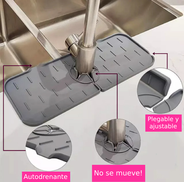 Descubrí la alfombra de silicona ideal para tu pileta de cocina, diseñada para evitar que se acumule agua en la mesada. Con medidas de 37x14x0.8 cm, este accesorio práctico y funcional mantiene tu espacio seco y limpio.