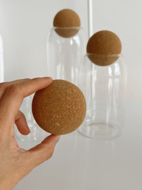 Descubrí este frasco de vidrio de gran capacidad, ideal para conservar y presentar tus productos con elegancia y calidez. Su tapa esfera de corcho liso ofrece un cierre seguro y un estilo natural que realza cualquier contenido.